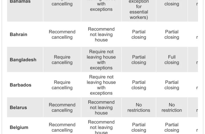 • Stay At Home Requirements: These varied significantly, from recommendations to strict mandates. "Exceptions for leaving the house" could range from allowing daily exercise and grocery shopping to highly restricted movements, such as only one person leaving per week or for essential trips only. These measures aimed to drastically reduce person-to-person contact.